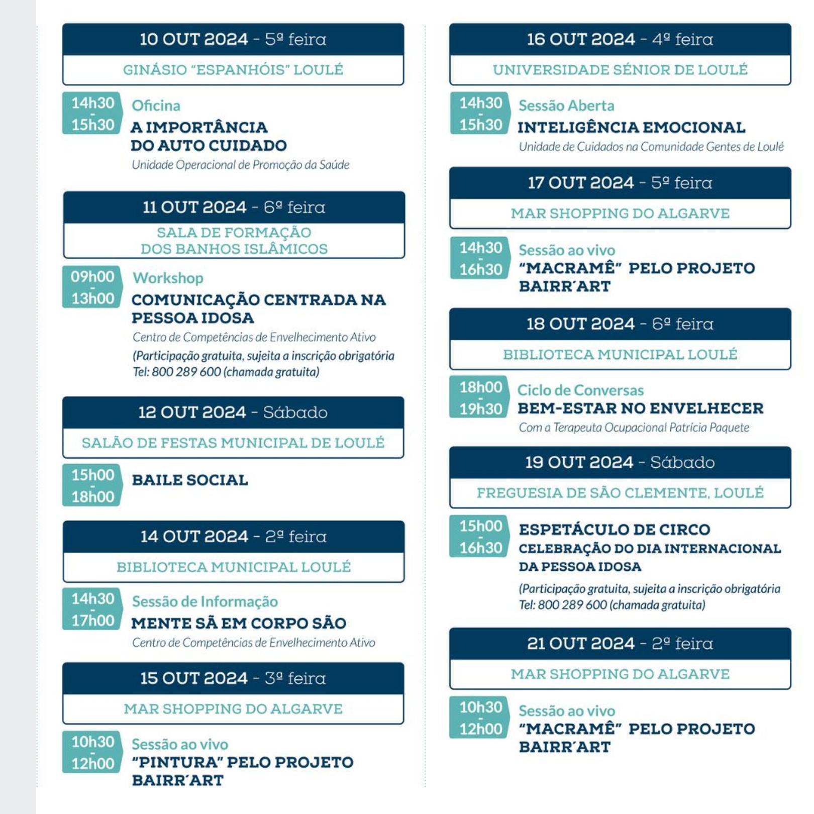 Entre 1 e 30 de outubro, o concelho de Loulé organiza o Mês de Promoção do Envelhecimento Ativo e Saudável, uma iniciativa da Câmara Municipal de Loulé.