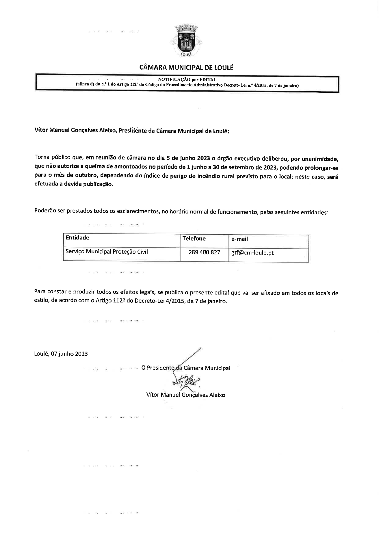 Edital - Câmara Municipal de Loulé - Proibição de Queimadas