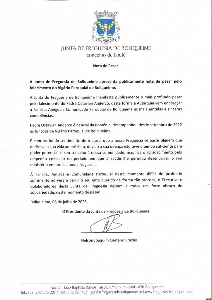 Nota de Pesar - Falecimento do Sr. Vigário Paroquial de...