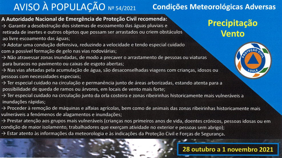 Aviso à População - Condições Meteorológicas Adversas - Precipitação e...