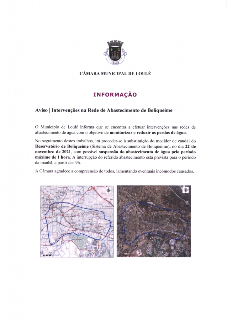 Informação - Aviso de intervenção na rede de abastecimento de...
