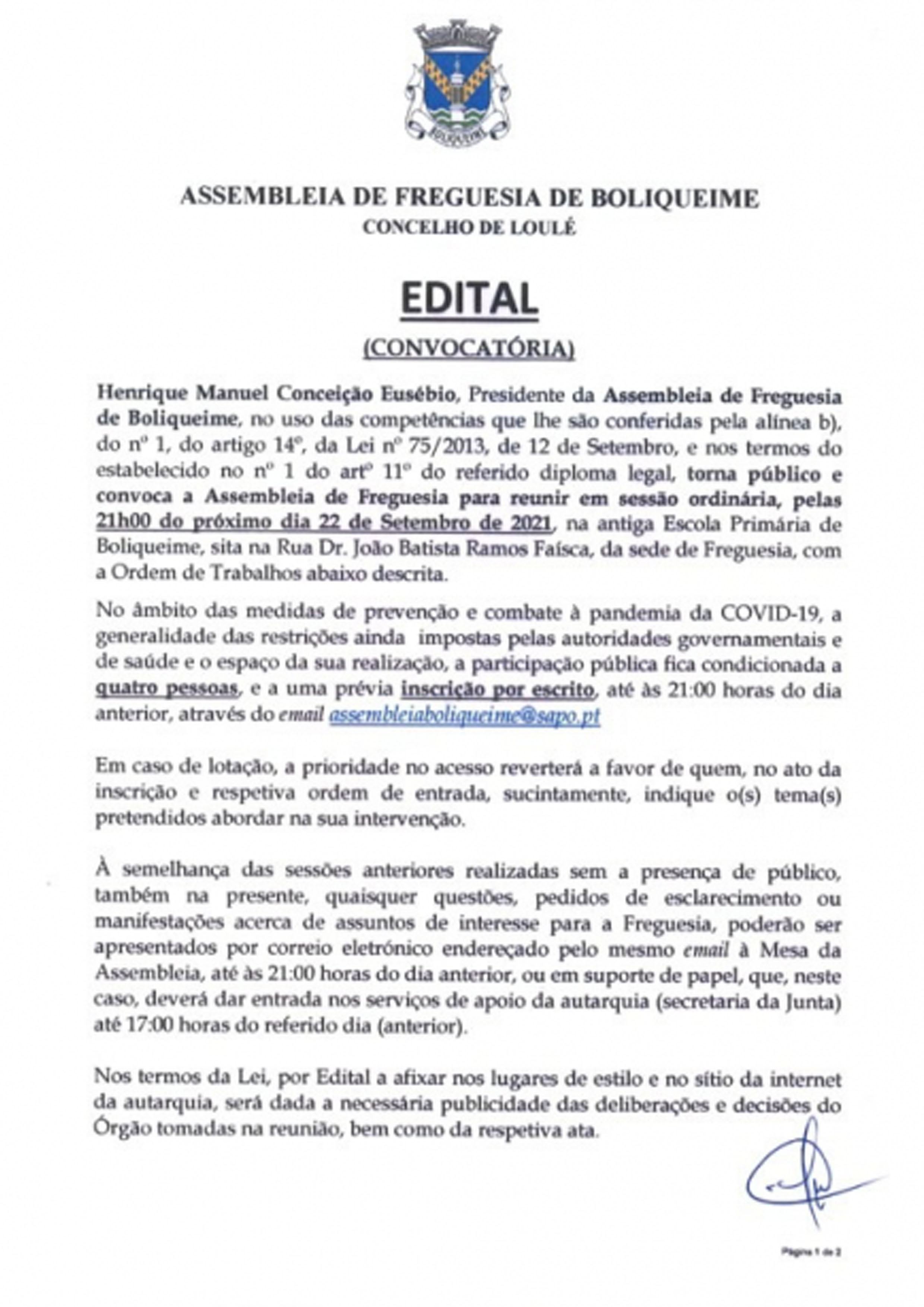 Edital (Convocatória) - Assembleia de Freguesia de 22 de setembro...
