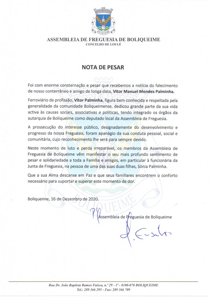 Nota de Pesar da Assembleia de Freguesia - Falecimento da...