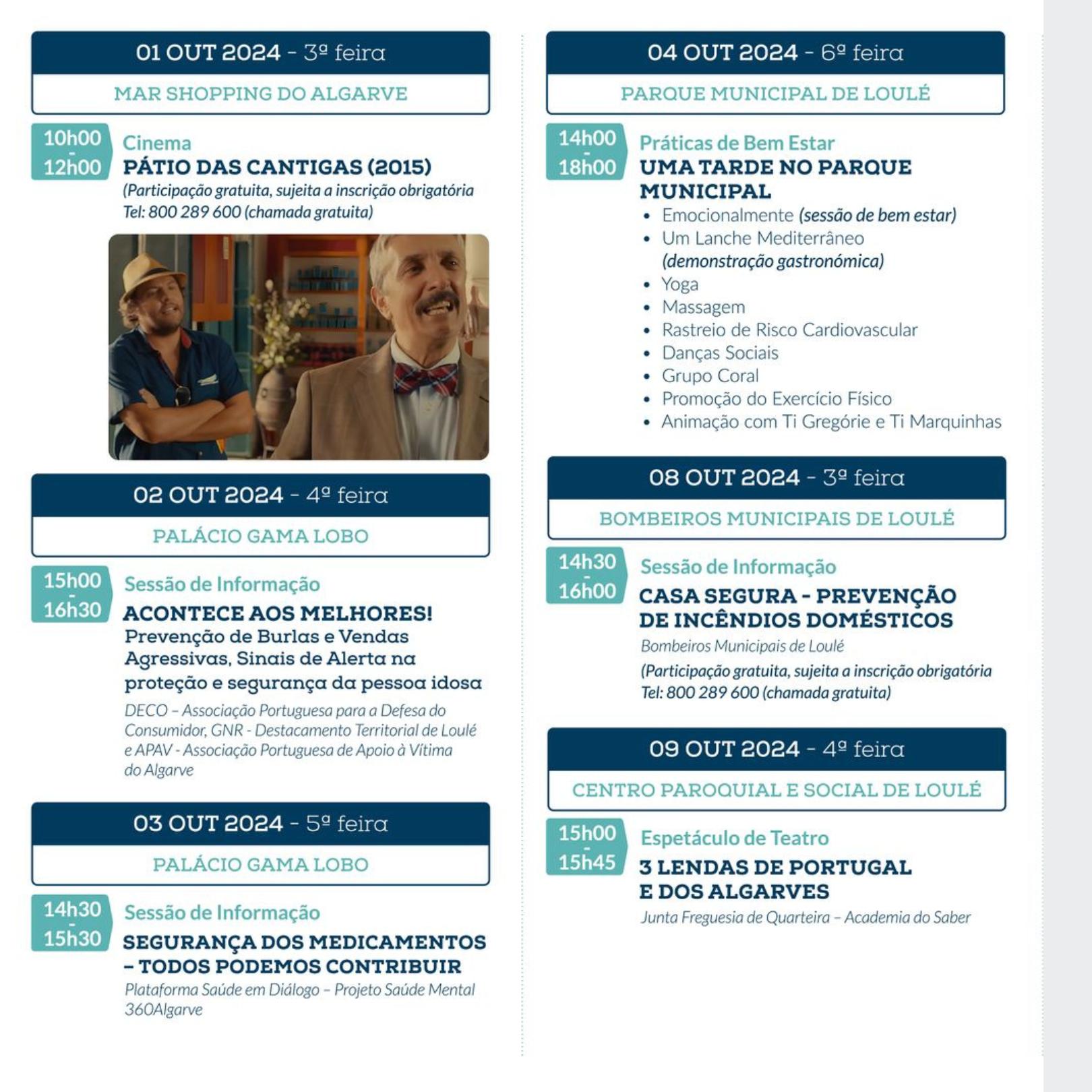 Entre 1 e 30 de outubro, o concelho de Loulé organiza o Mês de Promoção do Envelhecimento Ativo e Saudável, uma iniciativa da Câmara Municipal de Loulé.