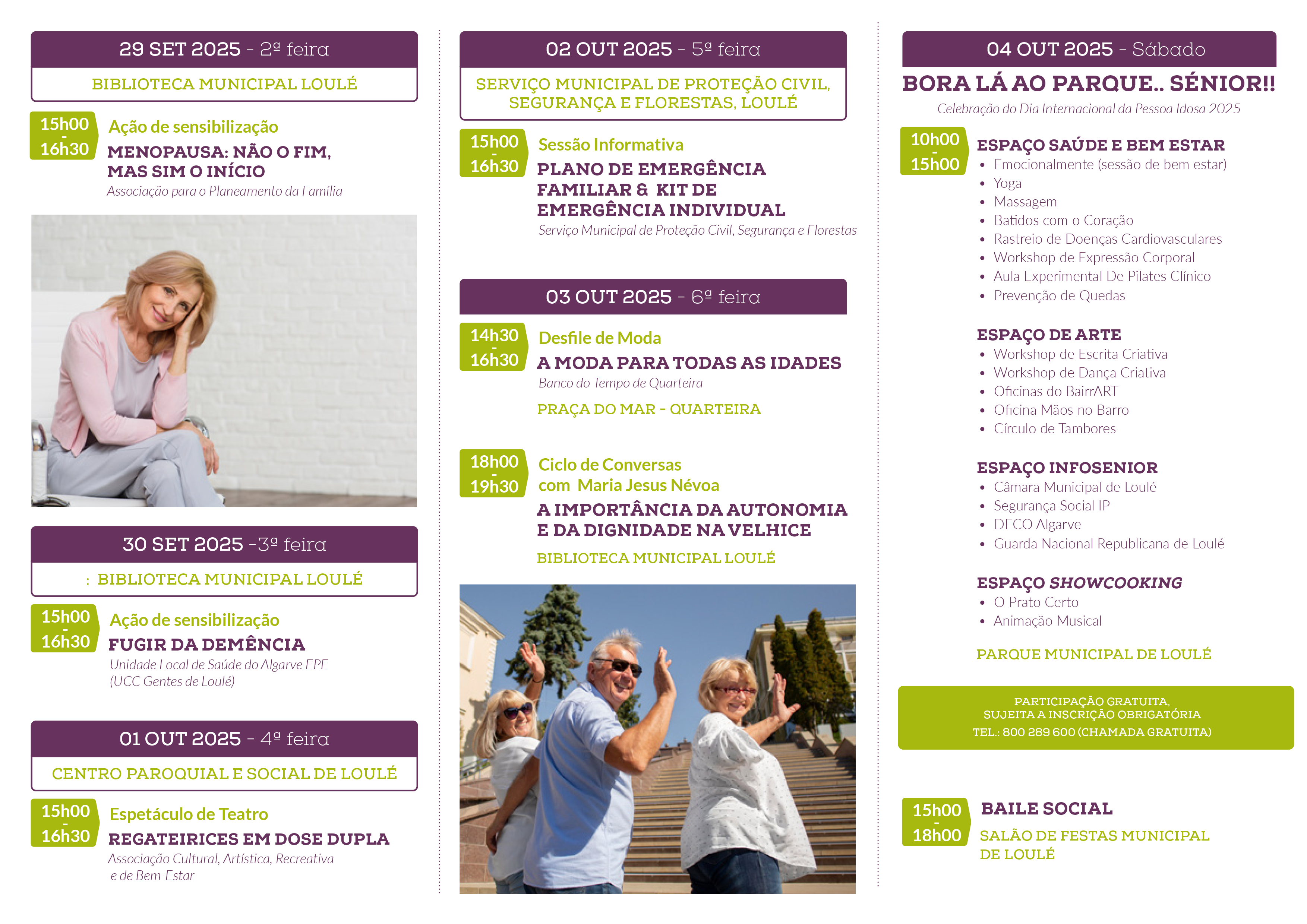 Com entrada livre, esta semana comemorativa assinala o Dia Internacional da Pessoa Idosa e é promovida pelo Município de Loulé.