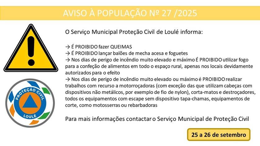 Solicitamos a vossa atenção para a informação do Serviço Municipal de Proteção Civil sobre as condições meteorológicas previstas para os dias 25 e 26 de setembro.