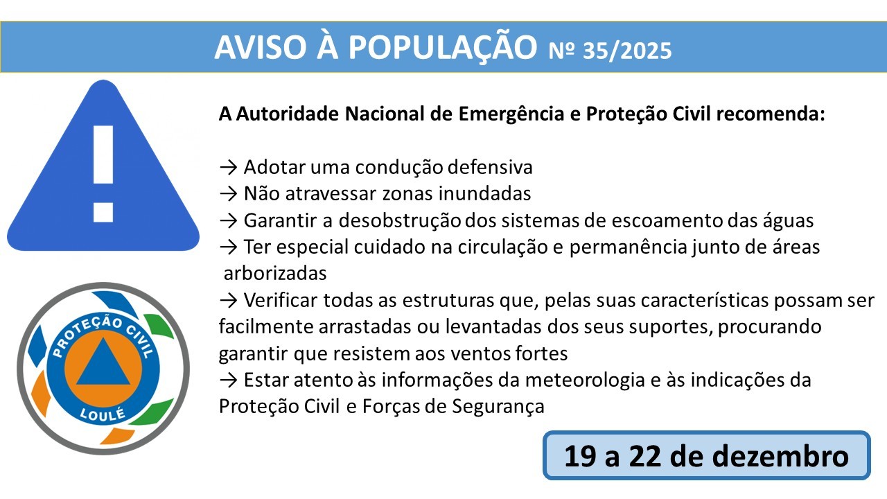 Aviso Nº 35/2025 - Condições Meteorológicas Adversas - Vento Forte, Precipitação e Agitação Marítima