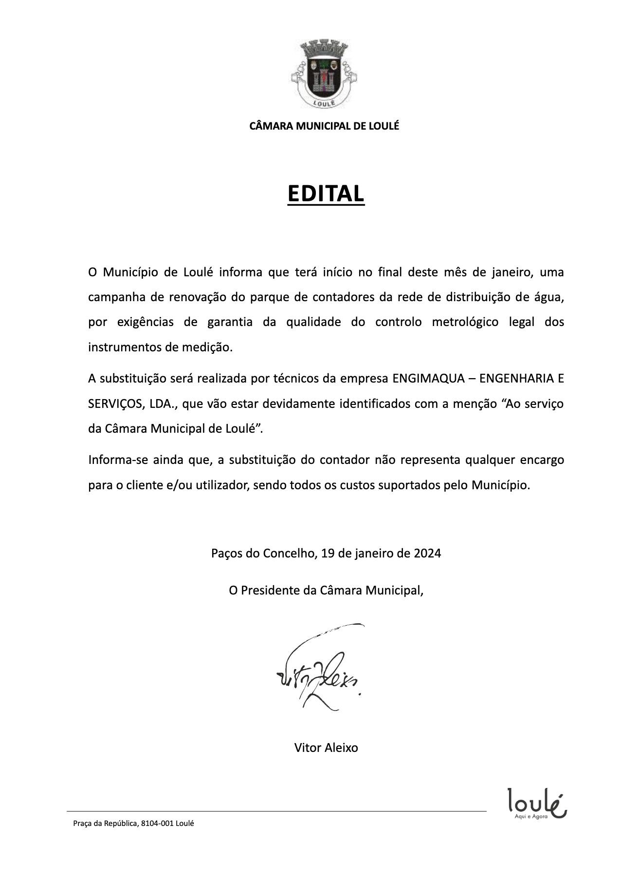 Edital - Câmara Municipal de Loulé - Substituição de Contadores