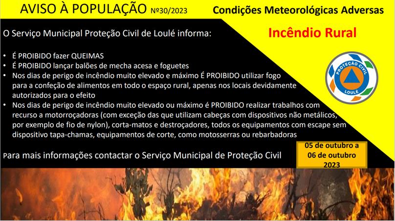 Aviso à População n.º 30/2023 Condições Meteorológicas Adversas - Risco...