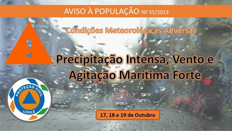 Aviso à População n.º 35/2023 Condições Meteorológicas Adversas - Precipitação...