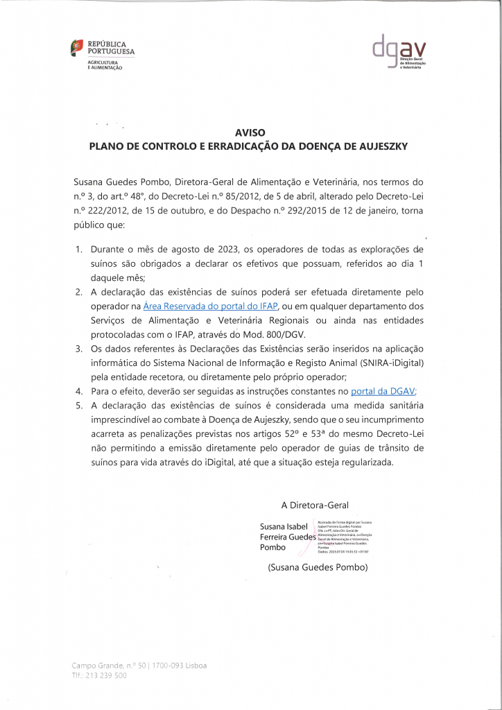 Aviso - DGAV - Plano de Controlo e Erradicação da...