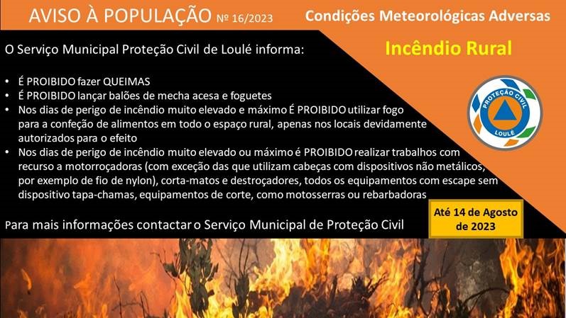Aviso à População n.º 16/2023 Condições Meteorológicas Adversas - Risco...