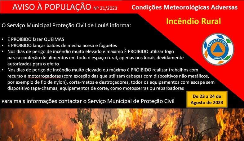 Aviso à População n.º 21/2023 Condições Meteorológicas Adversas - Risco...