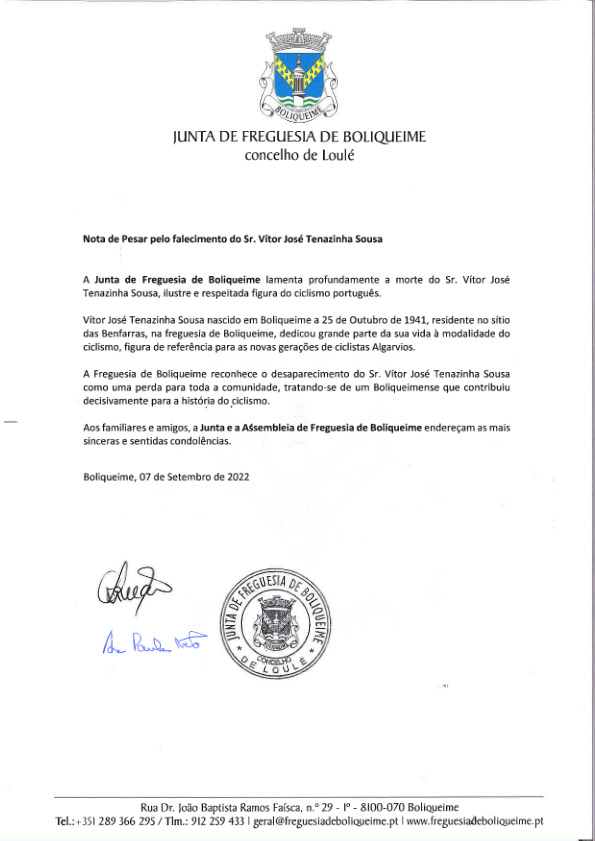 Nota de Pesar - Falecimento do Sr. Vítor José Tenazinha...