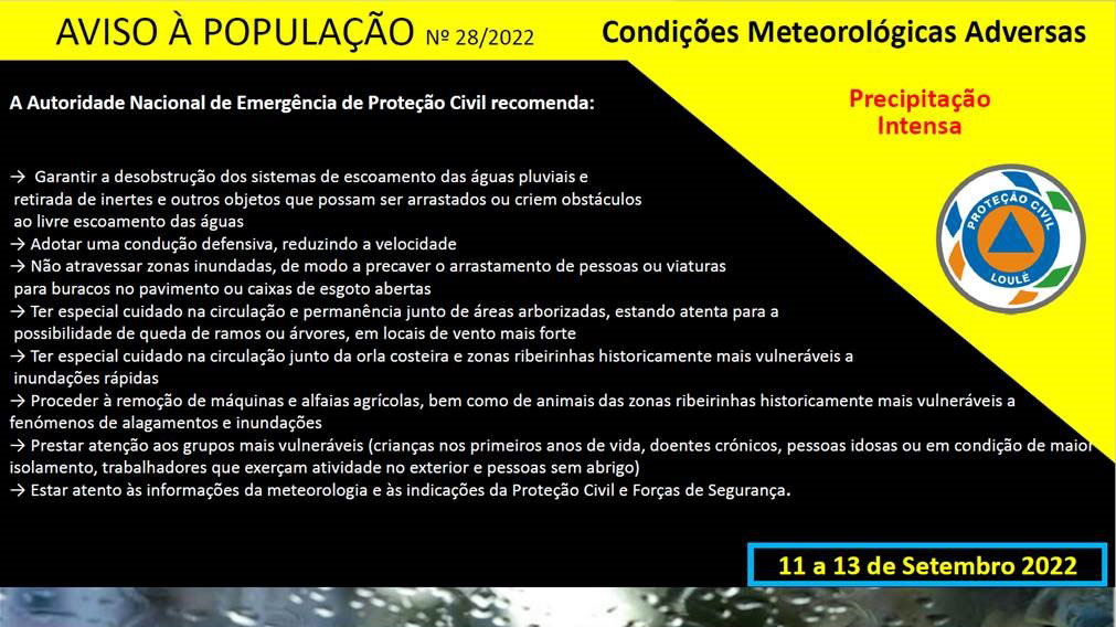 Aviso à População - Condições Meteorológicas Adversas - Risco de...