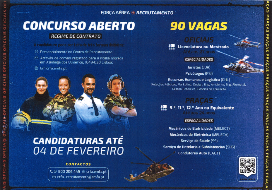 Informação - Concurso aberto para a Força Aérea Portuguesa
