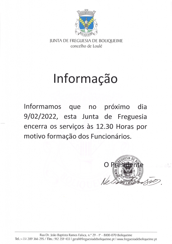 Informação - Encerramento excessional dos serviços da Junta de Freguesia