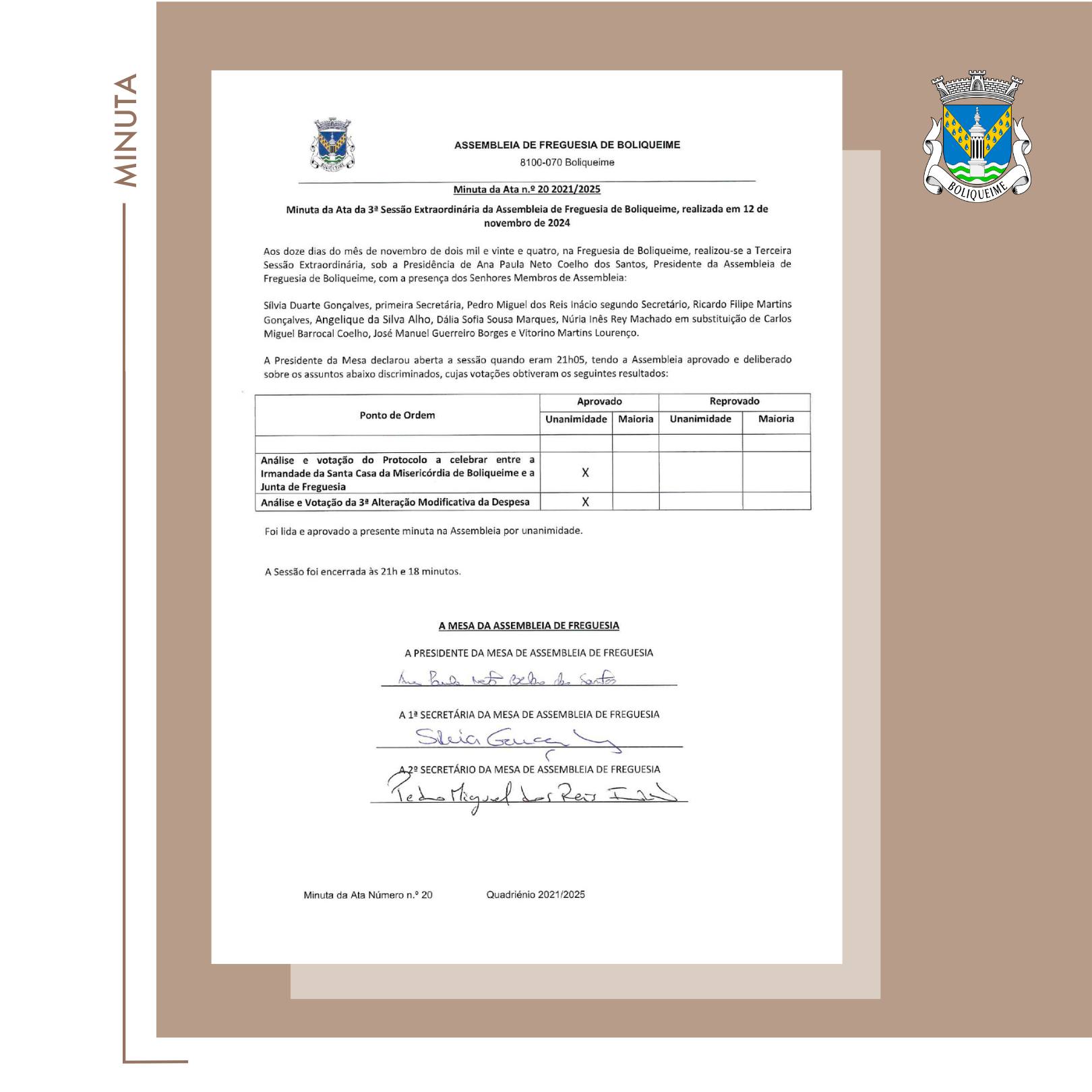 Partilhamos a Minuta da Ata da 3ª Sessão Extraordinária da...